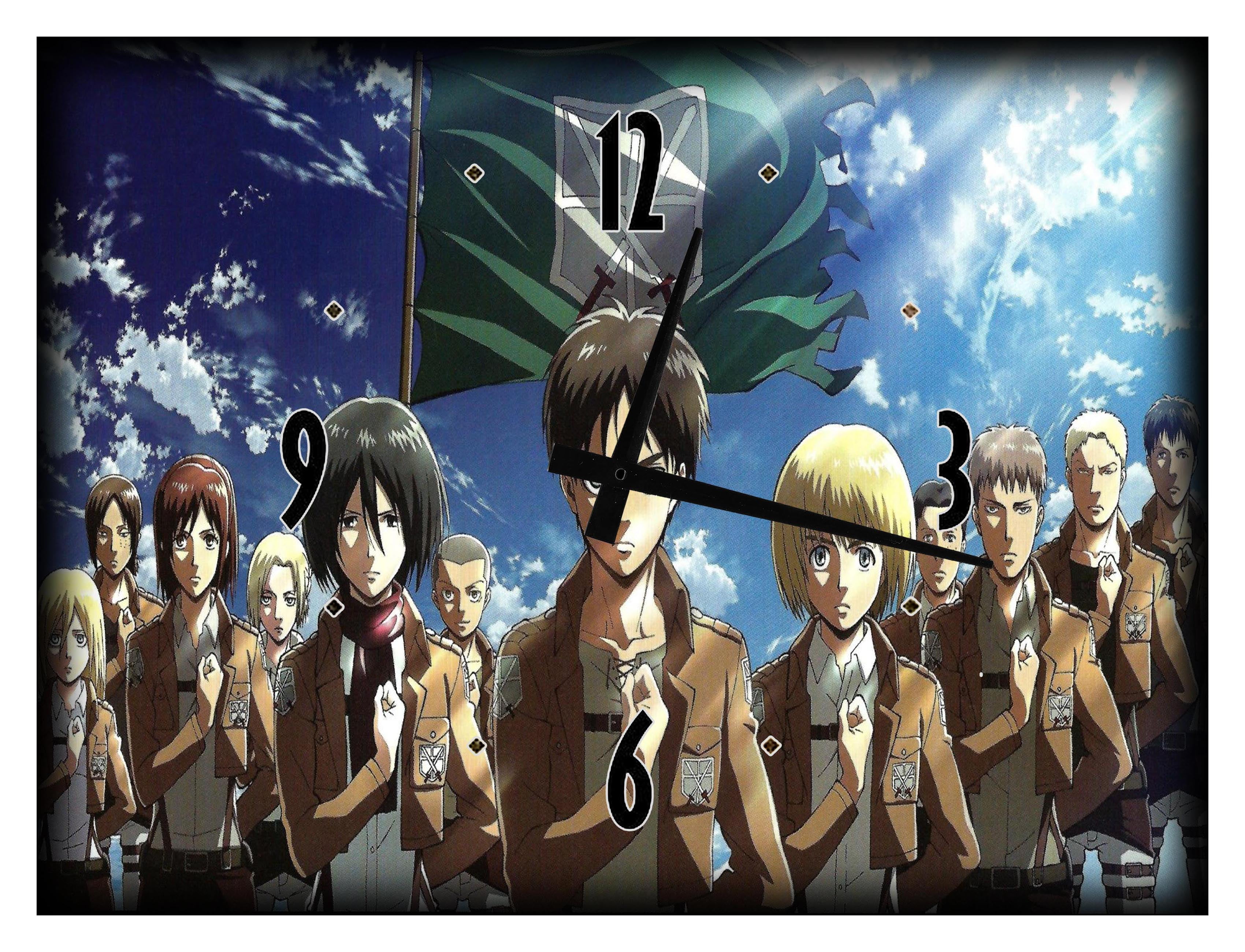 Wall Clock On Canvas Print Anime Hero United Force Attack Titan Flag Gaming Home Decor Large Clock Wall Art 12 X 16 Inch For Room Walmart Com